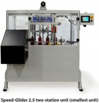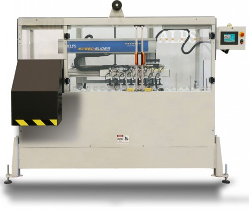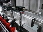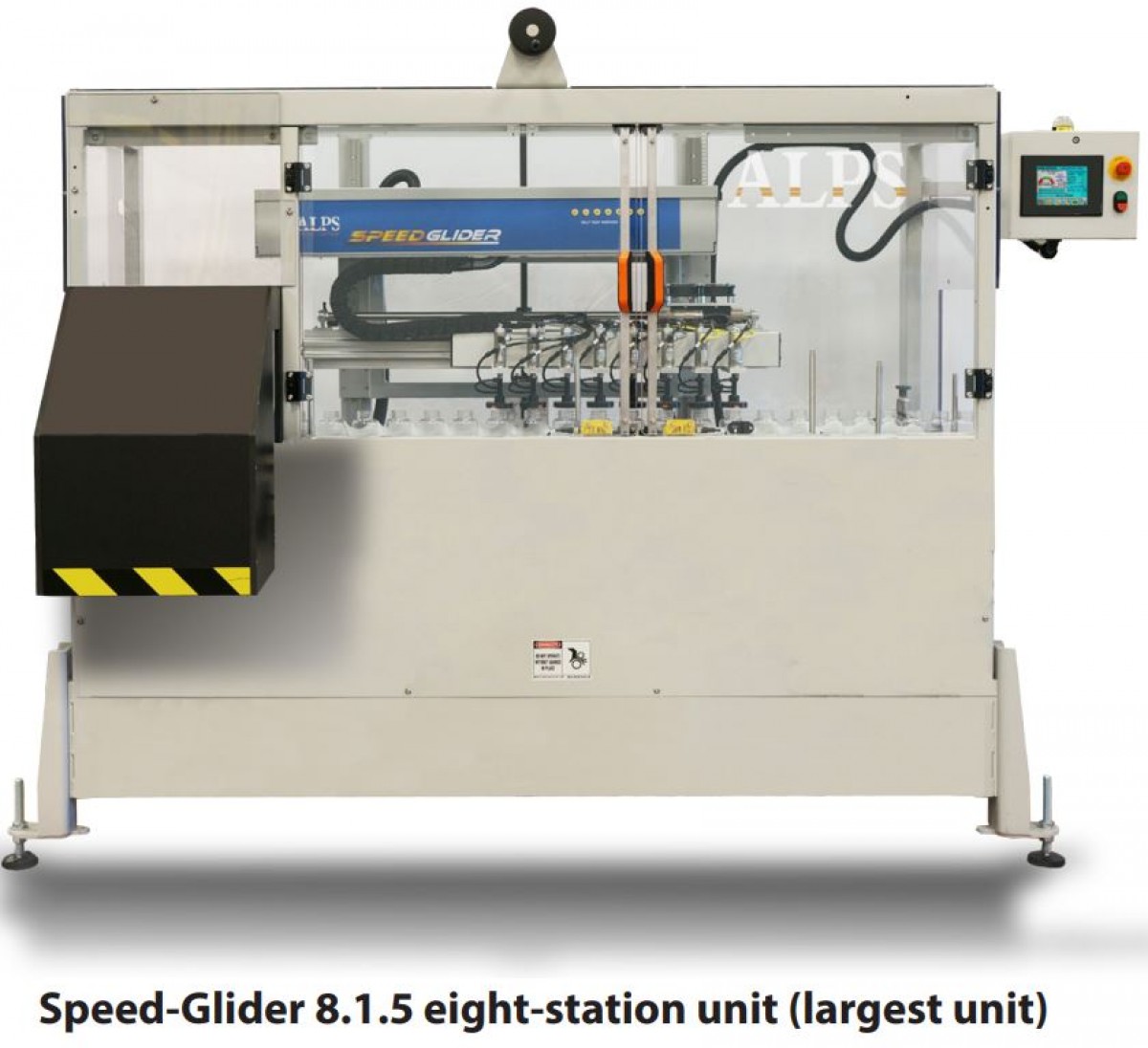 The ALPS Speed-Glider Multi-Station Moving Head Leak Tester is a multiple-station, continuous-motion, linear leak test system for empty containers. The Speed-Glider is designed for inspection speeds up to 500 containers-per-minute (30,000 containers-per-hour). Positive container handling and control is achieved through the use of precision timing screws for each container size, or timing screws may be shared between similar container sizes. The use of this single change part greatly simplifies setup and changeover, while ensuring optimized performance. The timing screw handles the container positioning and only a single sensor is used in the test area to verify the presence of containers. ALPS SpeedGlider Tester