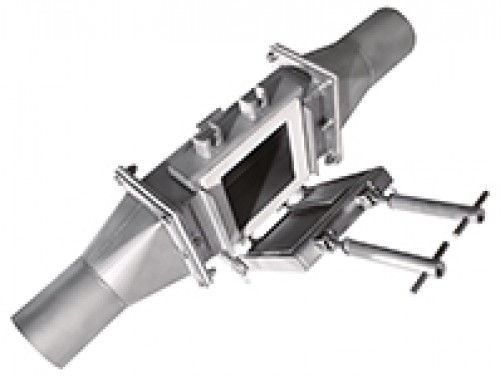 Bunting Magnetics Pneumatic In-Line Magnets are built for use in dilute phase pneumatic conveying systems. They can be installed easily with optional factory-supplied compression couplings and work best in horizontal runs with the plate magnet down to take advantage of material stratification.