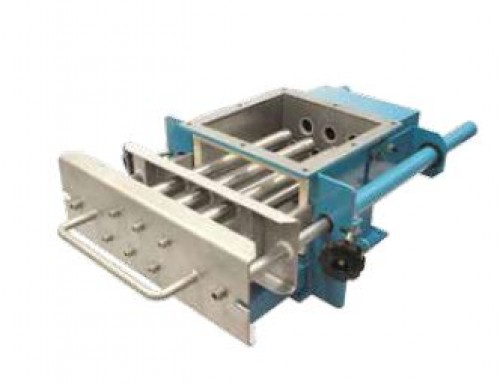 Bunting Magnetics Self-Cleaning Drawer Magnets have extra-long magnetic cartridges that fit inside stainless steel sleeves. Tramp metal collects on the sleeve surfaces and falls from the sleeves when they are pulled clear of the magnetic cartridges. No wiping or brushing is required.